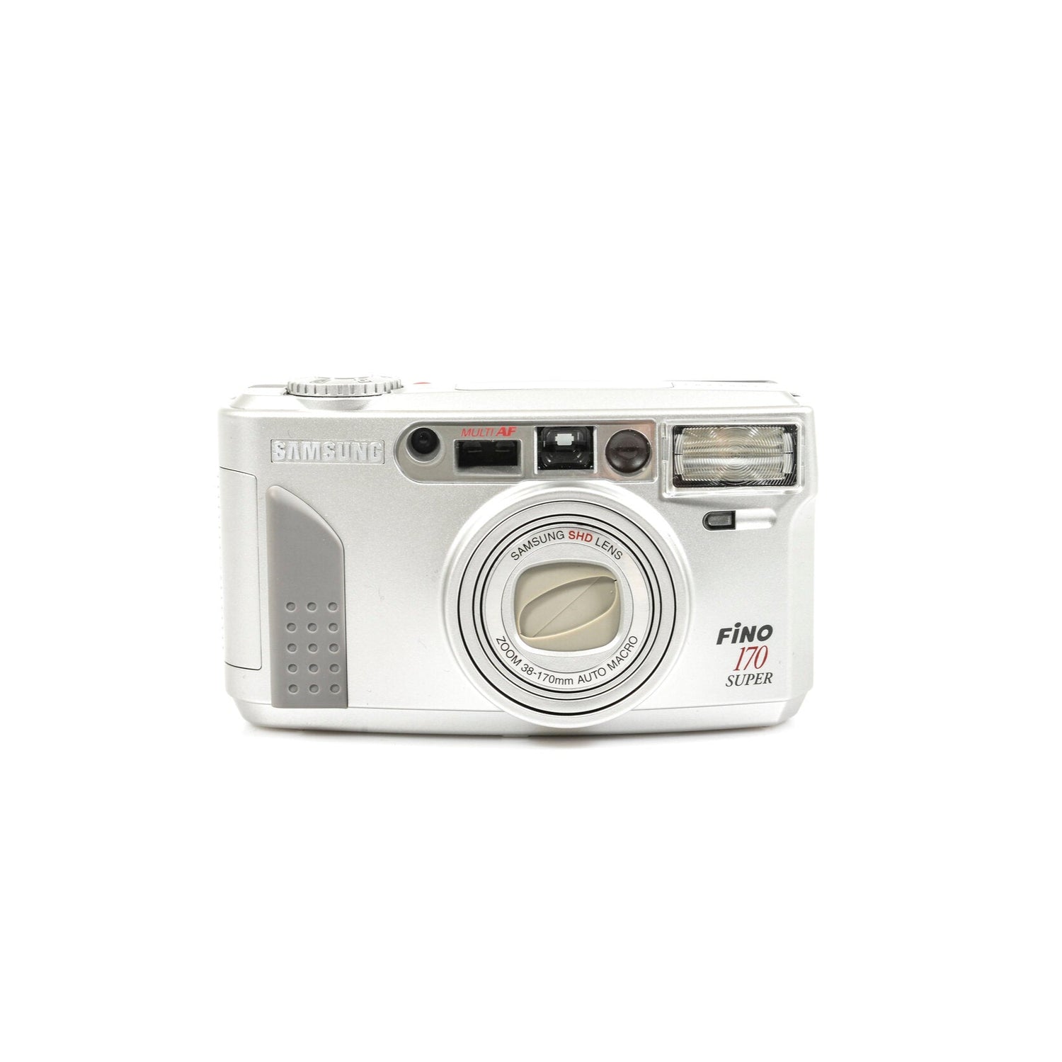 This Samsung Fino 170 Super 35mm Point and Shoot Film Camera is easy to use and maintain. Featuring a powerful flash, 38-170mm zoom lens, self timer and variety of settings, this camera gives you more flexibility and choices than most point and shoot film cameras. This camera requires a 1x CR123A battery to operate. This camera is extremely rare in new condition.