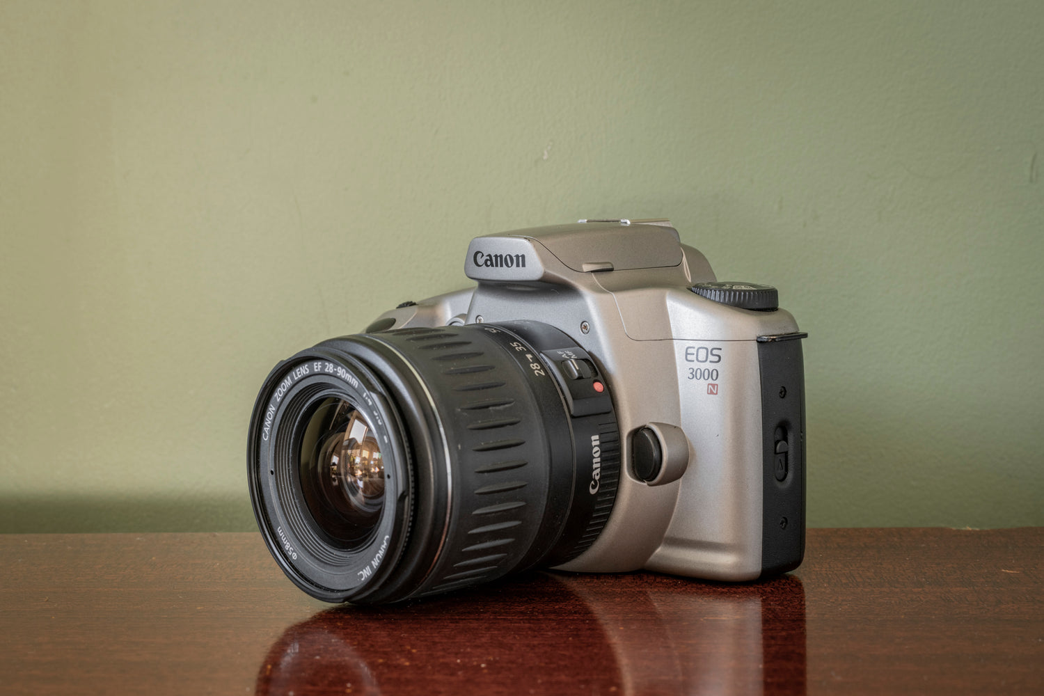 This Canon EOS 3000 35mm SLR Film Camera + 28-90mm F4-5.6 Lens is in fantastic overall condition and comes in full working order. It has been cleaned and film tested. It also comes with our 60-day money-back guarantee.