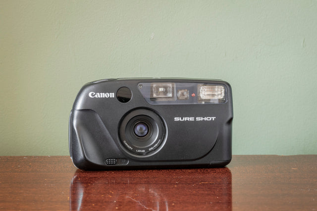 This Canon Sure Shot 35mm Point and Shoot Film Camera is superb fun to use. Sporting a bright flash and a variety of settings, this point-and-shoot camera gives you a little bit more control than others in its range. Featuring a variety of settings, this camera will suit the curious photographer. This camera uses all 35mm film and is great for either Black and White or Colour.