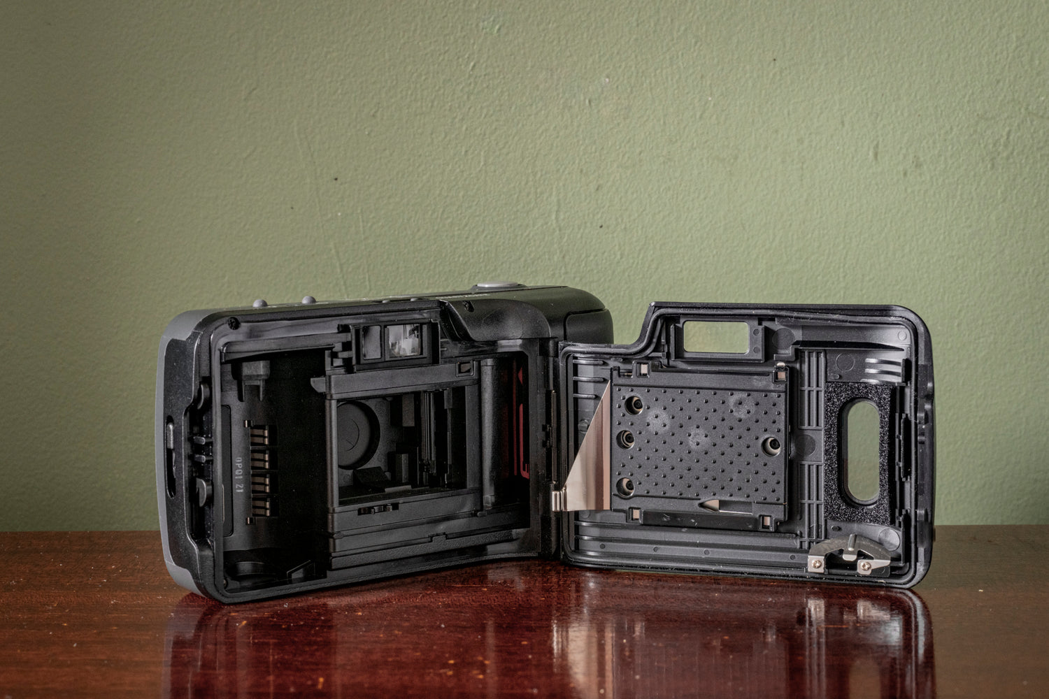 The Olympus AF-1 Mini was released in 1995. It features a built-in flash, automatic winder, sharp 35mm F3.5mm lens. It has a "weatherproof" body, although I would propose taking this with a pinch of salt and still being careful with it.