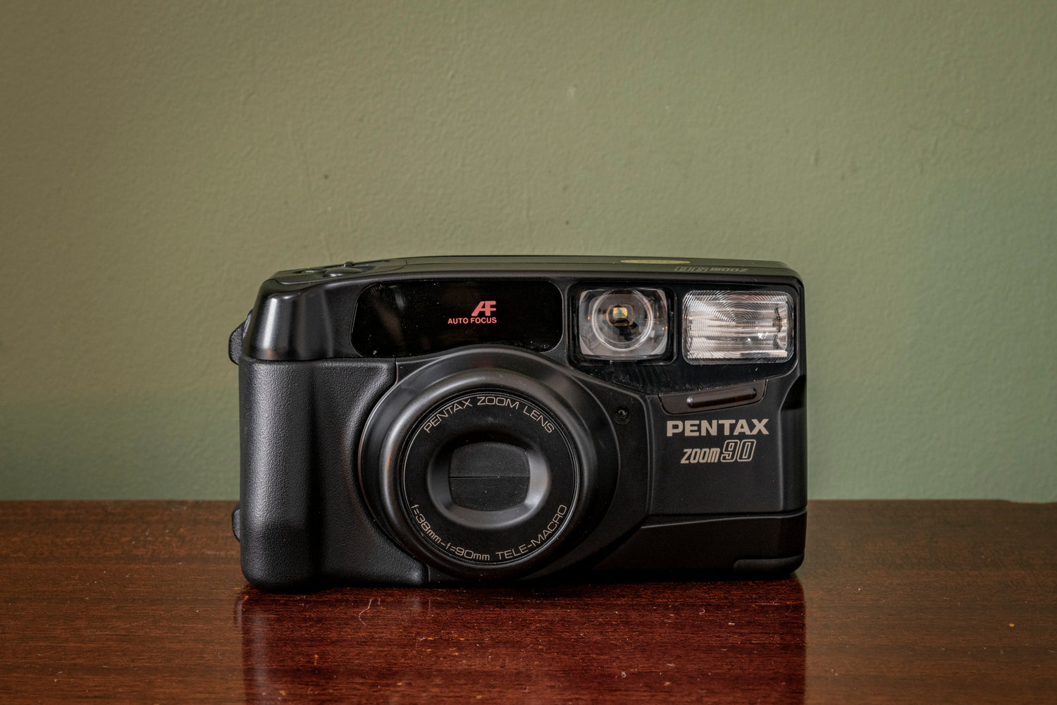 The Pentax Zoom 90 Point and Shoot 35mm Film Camera is easy to use and maintain. It features a sharp 38-90mm zoom lens, autofocus, bright flash, self timer and electronic winder. It is great fun to use, reliable and perfect for lifestyle, travel and parties. Perfect for all skillsets.