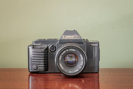 - F16 Film Camera Store - Lovely 1980s Canon T70 35mm SLR Film Camera + Canon 50mm F1.8 Lens + Canon 244T Flash £84.99Unit price /UnavailableVery low stock (1 unit)