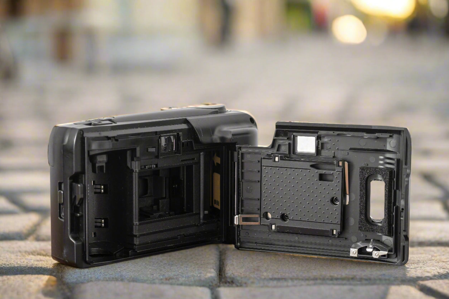 With a sliding lens protector and bright flash, this fantastic retro point-and-shoot will bring you hours of fun. With a 34mm F5.6 lens this camera is the ideal companion for travel, lifestyle and parties. It uses all 35mm film and requires 2x AA batteries to operate.