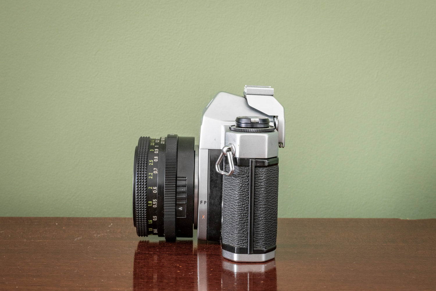 This ASAHI Pentax SL 35mm SLR Film Camera + 50mm Carl Zeiss F2.8 Lens is in fantastic condition. It is easy to use and operate, reliable and generally such a pleasing camera to use. It's nicely weighted and you can feel how considered the design of this camera was when it was designed and produced.