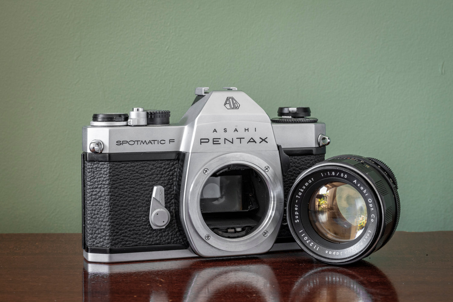 Mint 1960s ASAHI Pentax Spotmatic F 35mm SLR Film Camera + ASAHI 55mm F1.8 Super Takumar Lens