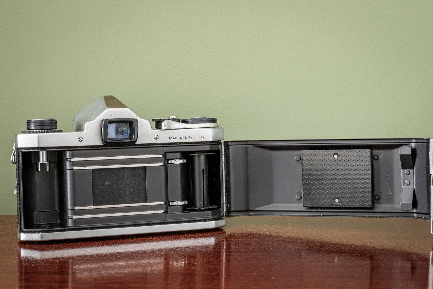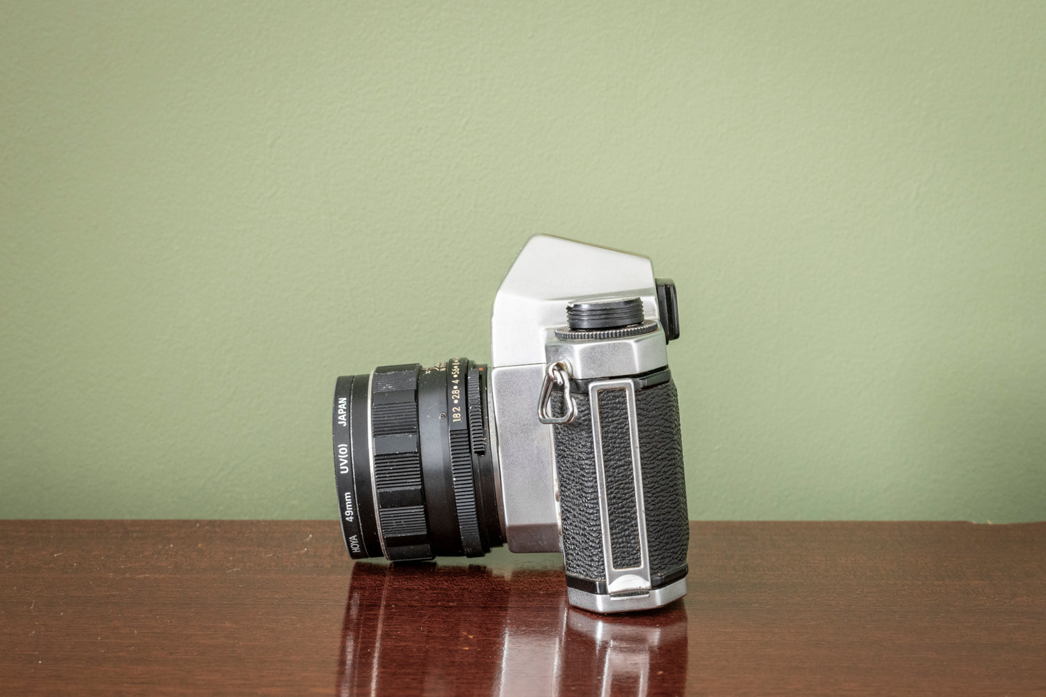 This camera features shutter speeds of 1/1000th, no lightmeter ( you can buy the attachment on line ) and the M42 bayonet lens mount ( plenty of lenses online ). It uses all types of 35mm film.