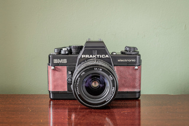 This Gorgeous Praktica BMS 35mm Film Camera + Practicar 28mm F2.8 Lens with ( Red Leatherette ) is in fantastic condition. This camera is in full working condition and has been cleaned, tested, and disinfected. It has a few little age-related marks but these do not affect the camera's operation or final image quality. It comes with our 60-day money-back guarantee.