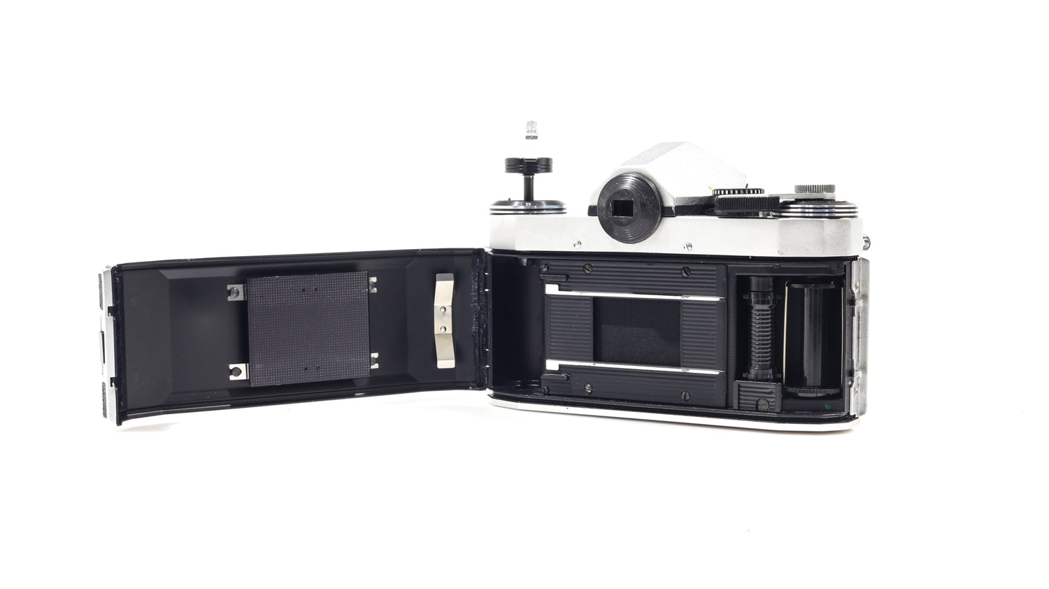 Please note this camera can be operated without batteries. Due to age the battery compartment is jammed shut, so we were not able to test the lightmeter on this model. Perfectly fine without it.